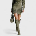 Rhea - Elegante abito in suede con frange